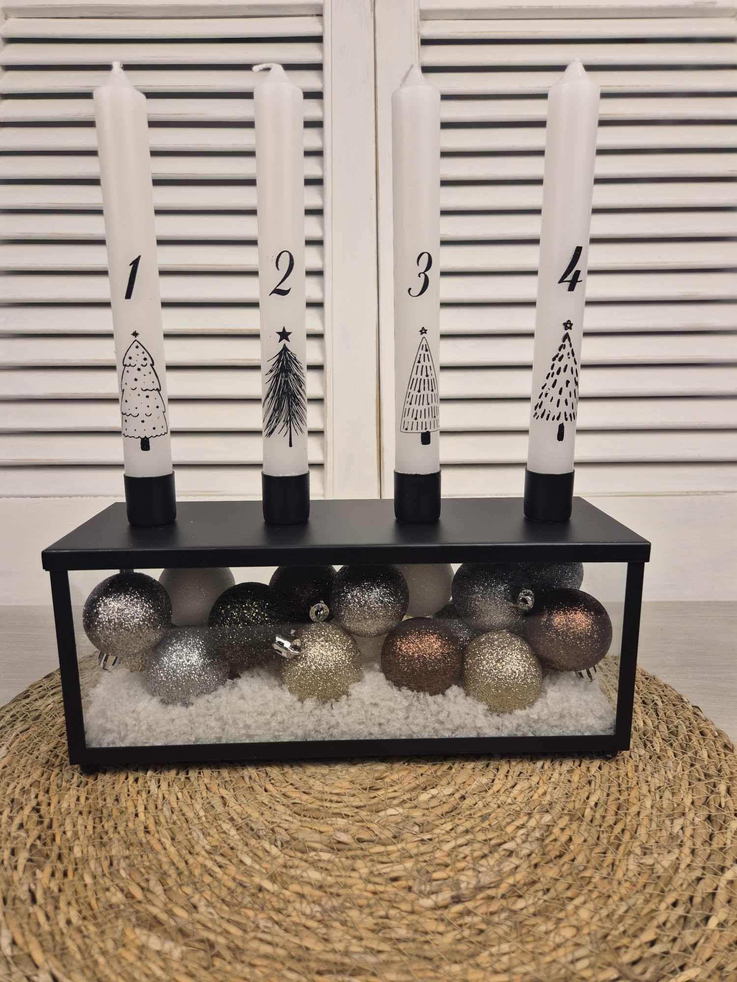 Leuke witte advents kaarsen 1,2,3 en 4. Afm. 20 cm hoog en 2,2cm breed.