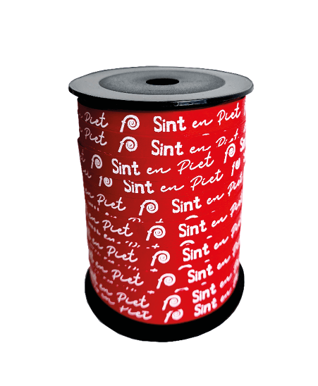 Cadeaulint – Sint en Piet, rood/wit – 10mmx100cm. U ontvangt 1 meter lint.