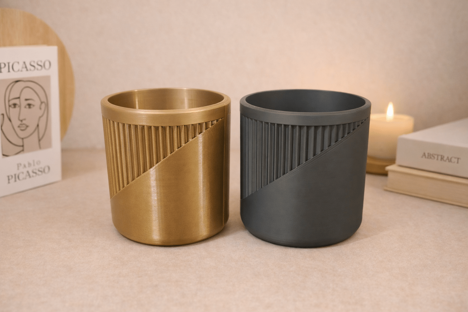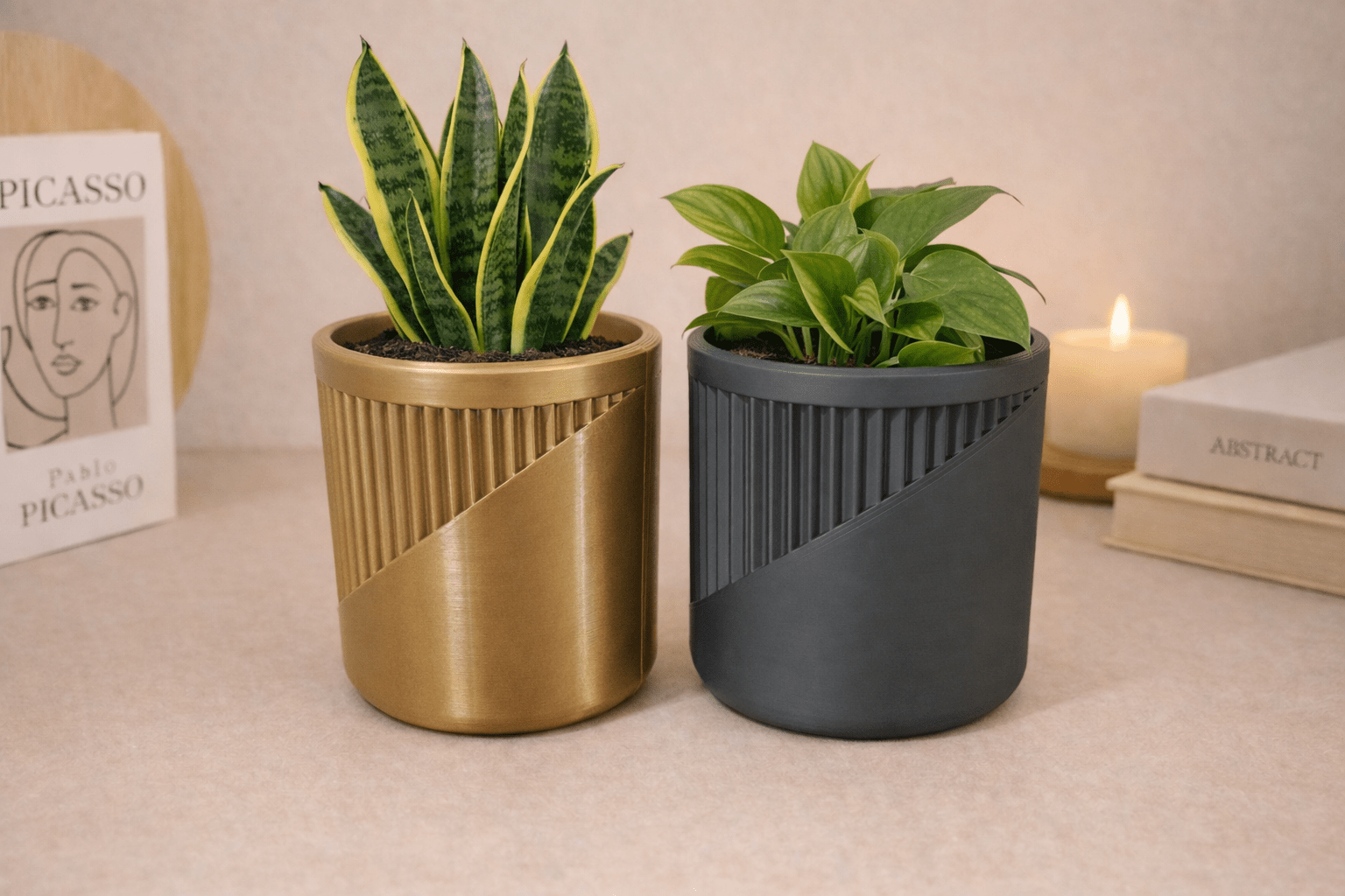 Stijlvolle bloempotten met een modern design en subtiele ribstructuur.