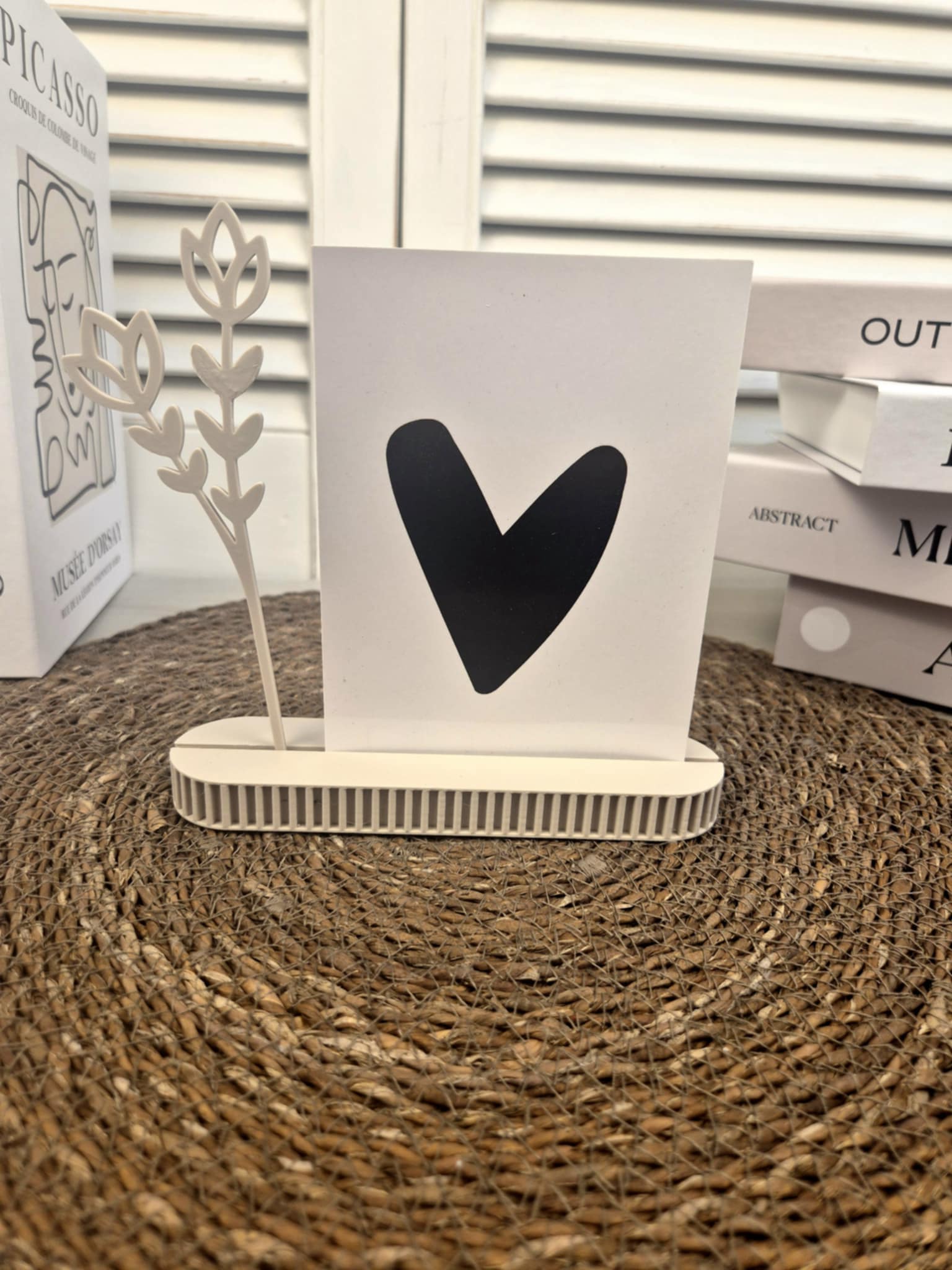 Deze unieke 3D-geprinte ribbel kaarthouder incl. hart kaart is een subtiele blikvanger die natuurlijke vormen combineert met moderne technologie.