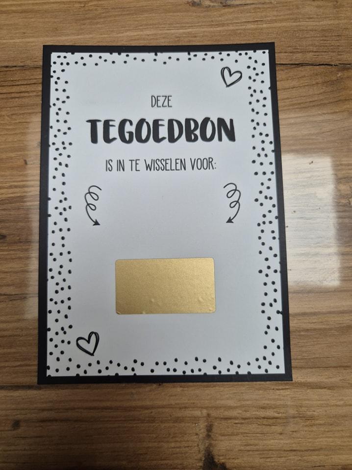 Schrijf het tegoed op de kaart, plak de krassticker erop…en klaar om cadeau te geven!