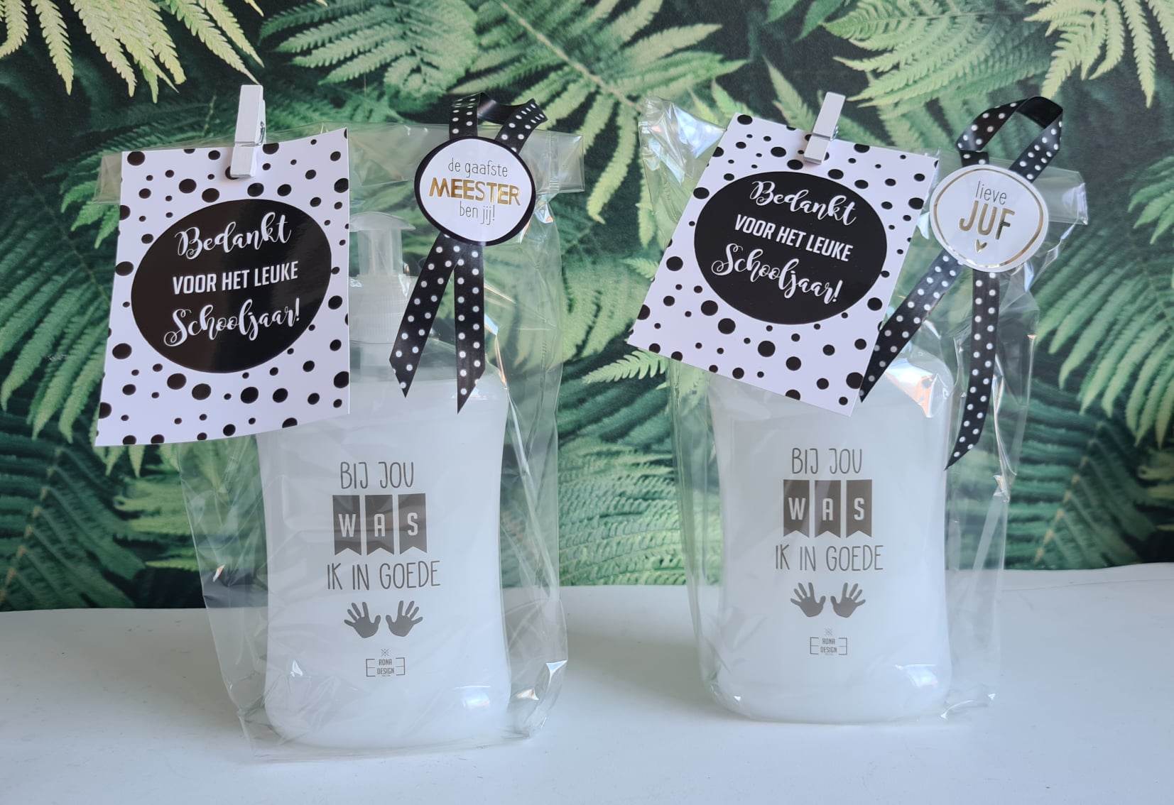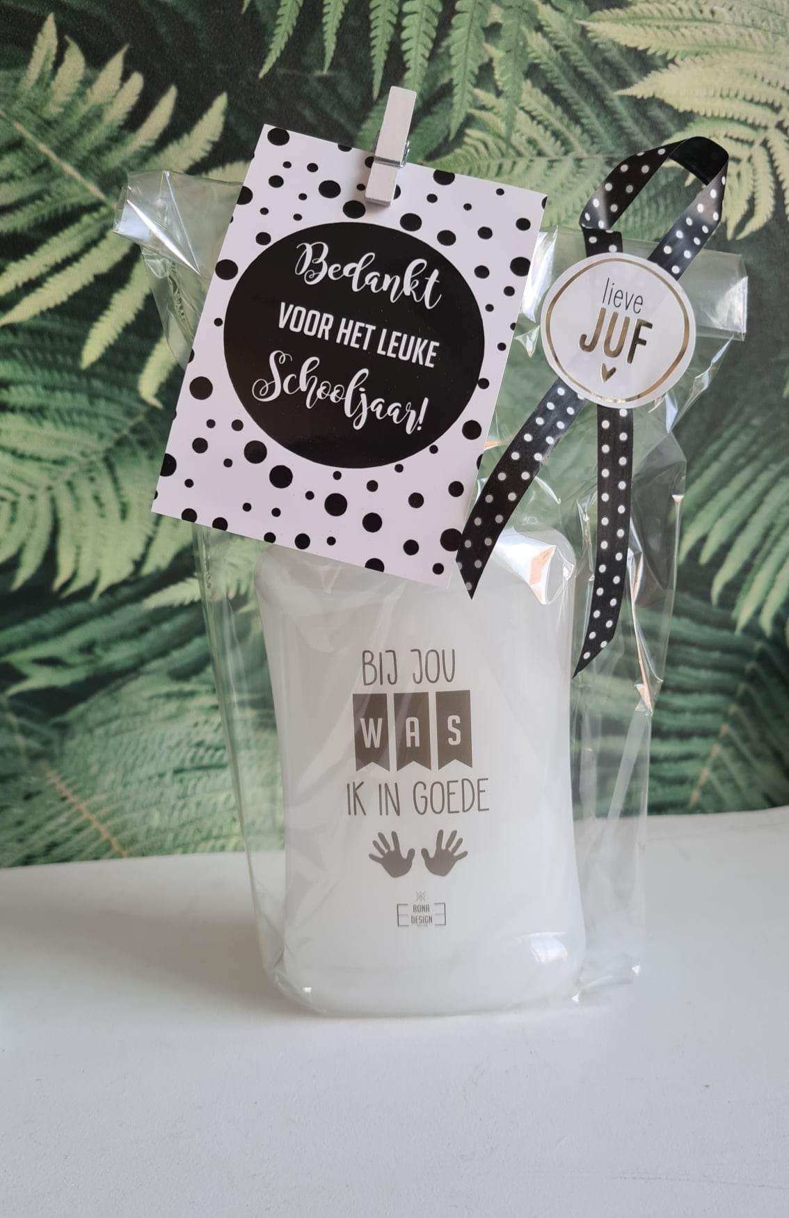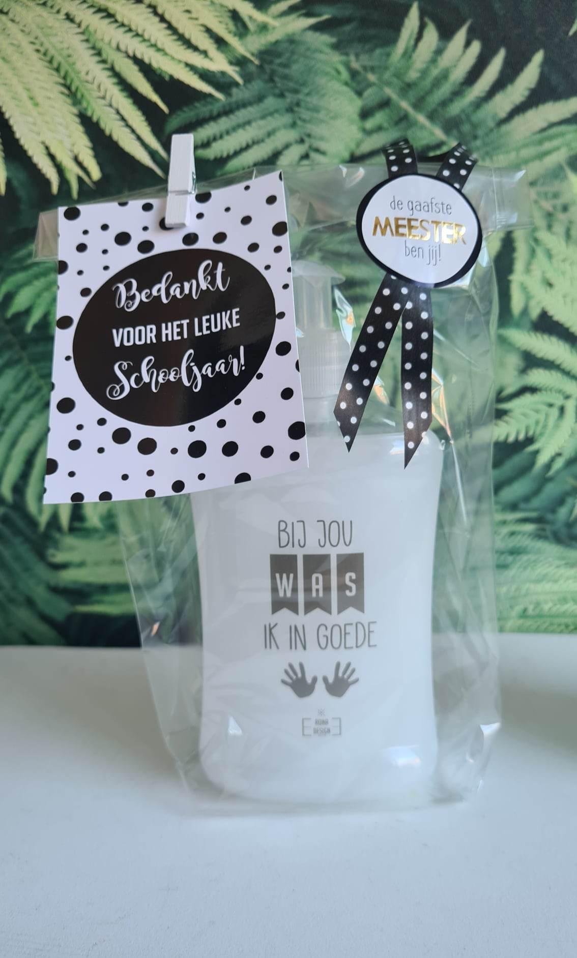 Bedankt de juf en/of meester met dit handige zeeppompje gevuld met witte zeep.